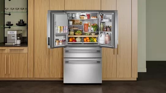 from this 4-door French Door Refrigerator makes room for every farmer's market haul and brings convenience with customizable storage spaces for your unique ingredients.
