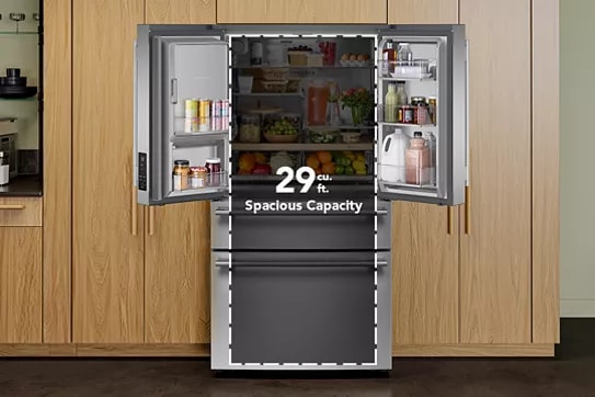 from this 4-door French Door Refrigerator makes room for every farmer's market haul and brings convenience with customizable storage spaces for your unique ingredients.