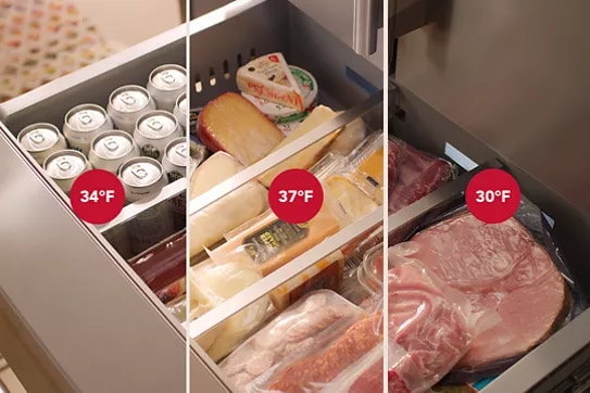 delivers organization with storage dividers and allows you to set temperatures manually. Adjust your drawer to be wine storage, deli storage, drink storage or meat storage at the touch of a button.