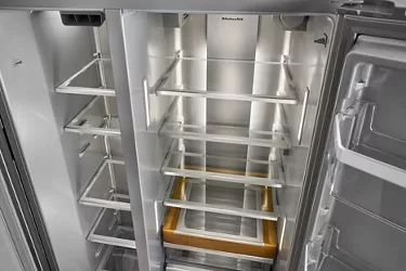 28.7 Cu. Ft. Side-by-Side Refrigerator with Exterior Ice and Water Dispenser and Removable Under-Shelf Wine RackMake room for every grocery run and farmers market haul with the largest side-by-side refrigerator capacity from KitchenAid brand. Signature Platinum Interior wows from the inside out with wood-look trim, metallic accents and ultra-bright LED lighting. And an Exterior Ice and Water Dispenser with Measured Fill allows you to select and dispense the exact amount you need in ounces, cups or liters.