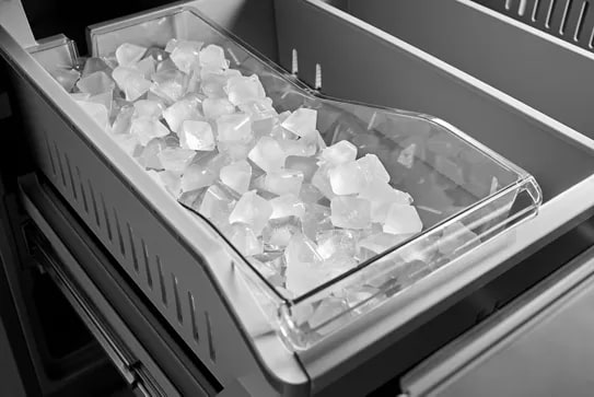 holds over 7 lbs of ice with a built-in ice maker in freezer. Use it to fill the cooler, or turn it off for additional frozen storage space.