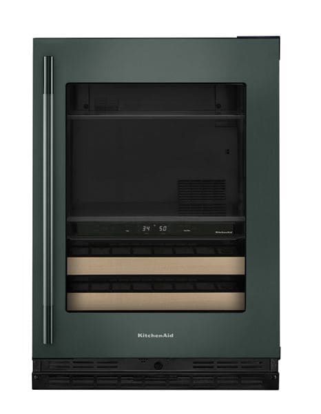 provides a built-in look within a standard 24" base cabinet, so the beverage center seamlessly blends in, letting your style stand out. Hidden hinges allow the beverage center door to sit flush with surrounding cabinet fronts when closed yet easily swing open a full 115°.