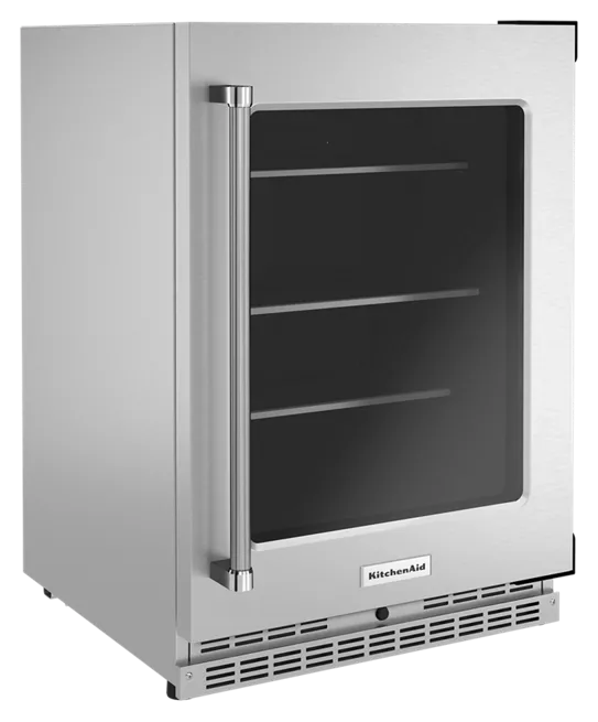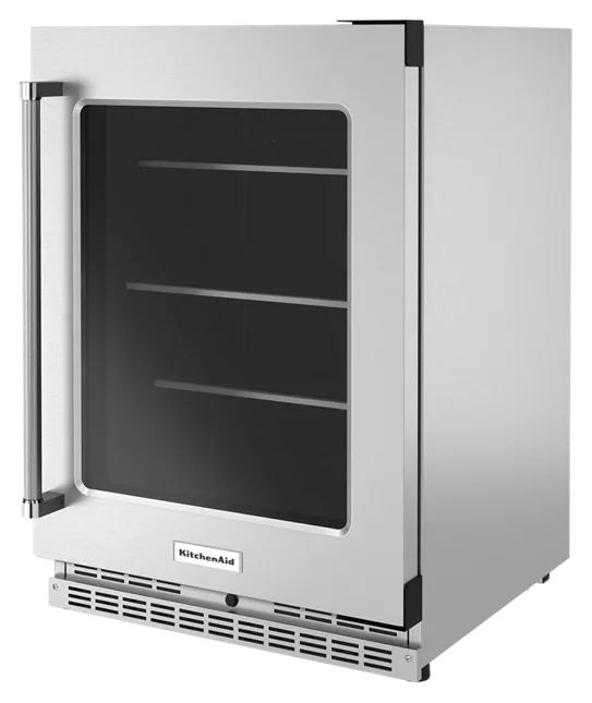 24" Undercounter Refrigerator with Glass Door and Shelves with Metallic Accents