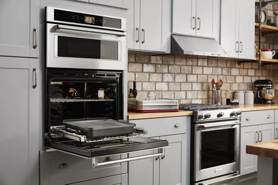 Gives you control of your oven in or out of the kitchen. Use our mobile app to remotely monitor and control the oven, suggest when it's time to tend the food, or enter your own cooking instructions and save them for next time. You can control your oven with simple voice commands through your Google Assistant or an Alexa-enabled device. And download the Yummly® app and search ""KitchenAid"" to find 90 attachment-ready recipes that will open up even more possibilities for you to create✝.