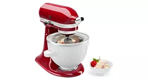 Are you planning an ice cream sundae bar for a party this weekend, or do you need a scoop of vanilla bean ice cream to top your freshly baked dessert? It's so easy to make ice cream, sorbet or gelato with the KitchenAid® Ice Cream Maker Attachment. Simply attach the bowl to the base of your household KitchenAid® Stand Mixer* to quickly and easily make up to 2 quarts of your favorite frozen treats at home. *Sold separately. Fits all KitchenAid® Tilt-Head Stand Mixers, except Artisan® Mini models - KSM3316 and KSM3317. Fits all KitchenAid® Bowl-Lift Stand Mixers, except the following 5, 5.5 and 6 Quart models - K5SS, KSM50, KSM500 and KSM450.