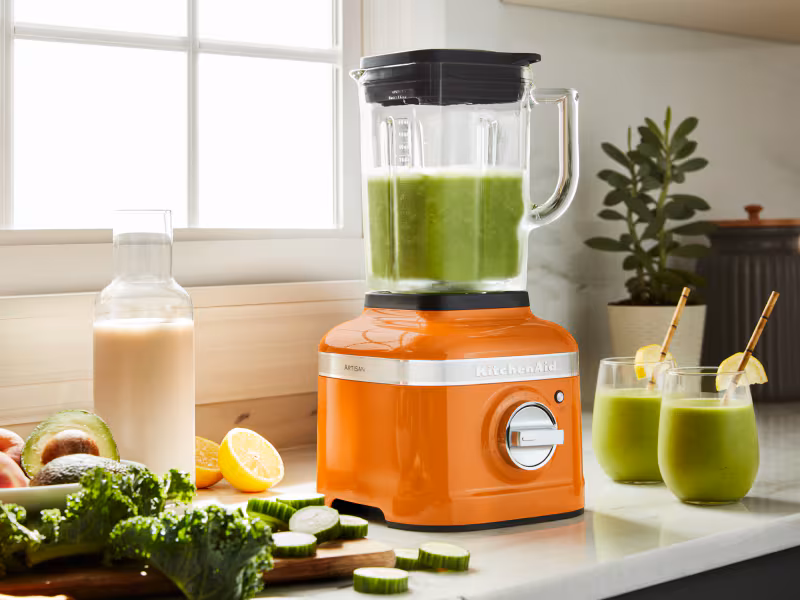 This blending process is ideal for pureeing hot ingredients. KitchenAid brand offers a Pro Line® Series Blender with Thermal Control Jar that blends and heats soups and sauces in minutes.