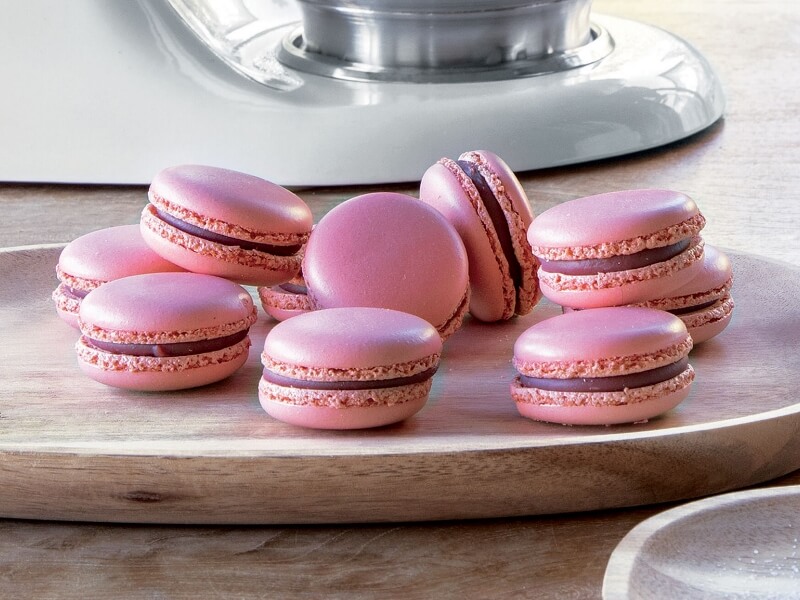 When making macarons, use a KitchenAid® food processor to mix the almond flour and confectioners sugar into a fine powder. The macaron recipe also calls for making a meringue, which should be whipped up in a stand mixer, hand mixer or whisked by hand.