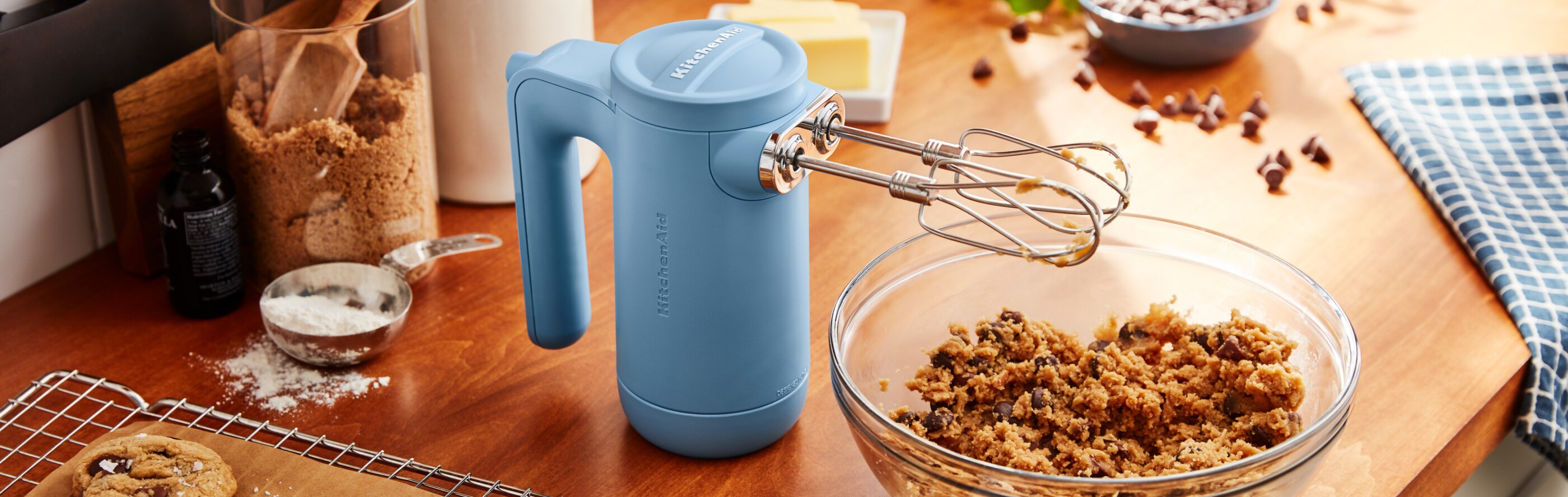 KitchenAid brand offers a variety of lightweight and compact hand mixers, convenient to use for everyday mixing needs. You can achieve excellent results with KitchenAid® hand mixer accessories such as the pro whisk attachment to whip eggs into delicate fluffy peaks. If you prefer portability, a KitchenAid® Cordless 7 Speed Hand Mixer allows you to move freely around your kitchen. Shop all KitchenAid® hand mixers to find the right match for your recipes.
