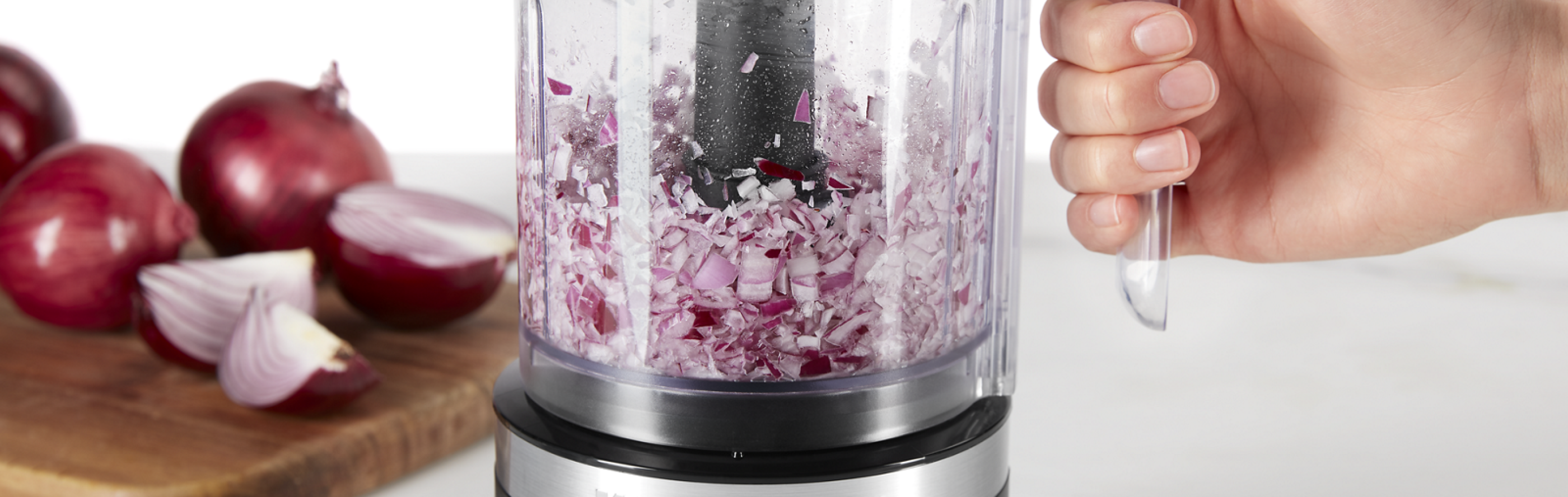 Whether forming the foundation of a classic mirepoix or caramelized atop a goat cheese tart, onions are a flavorful and essential ingredient across cuisines. KitchenAid® food processors make quick work of chopping, dicing, slicing and mincing onions for a more streamlined process when creating slow roasted chicken, a colorful curry or a hearty bolognese sauce. Read more to learn how you can take on new culinary challenges with this cooking essential.