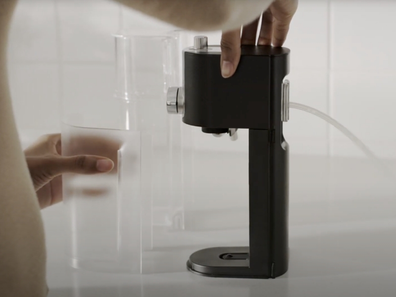 After removing the milk tank and storage container, take off the milk frother’s milk hose and hose connector. Remove the froth level adjustment knob, pull out the function knob and remove the decorative plate. Next, pull and twist the milk dispenser in a downward direction to remove it, and take out the black rubber frother component by pushing down from the top and pulling from the bottom.
