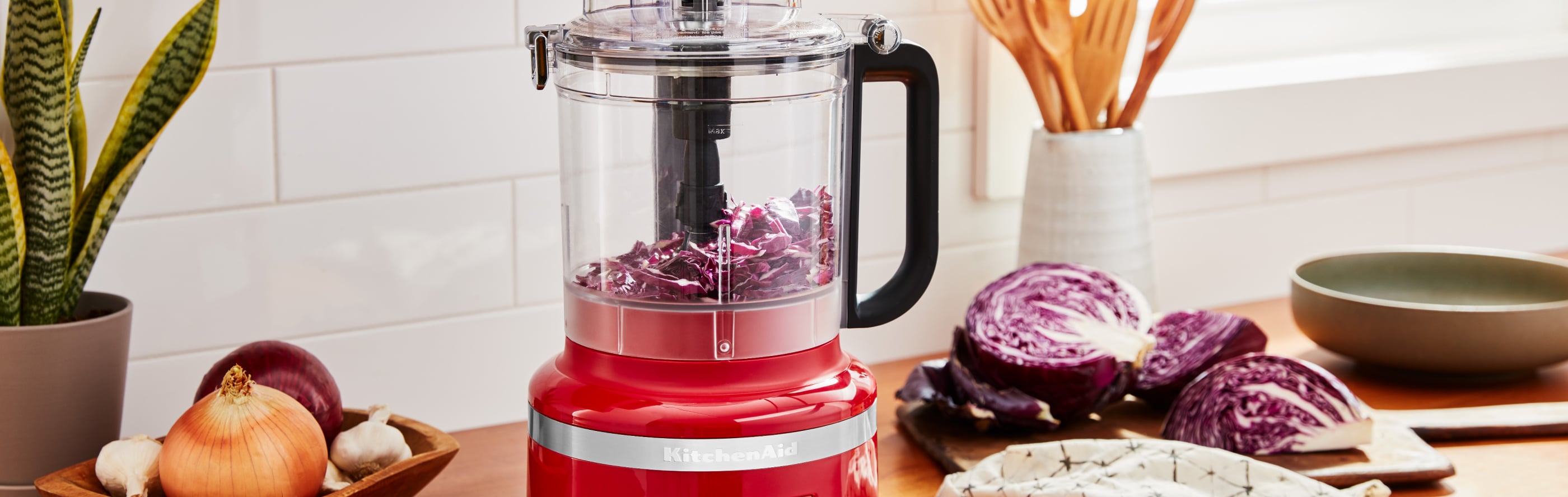 Food processors offer precision and consistency when shredding cabbage. They’re useful for far more than basic food prep and are the perfect tool to help you discover new flavors and textures. If you’re ready to expand your culinary expression, KitchenAid brand has a variety of sizes and features to choose from. Explore the range of capabilities in KitchenAid® food processors to make everyday meals extraordinary.