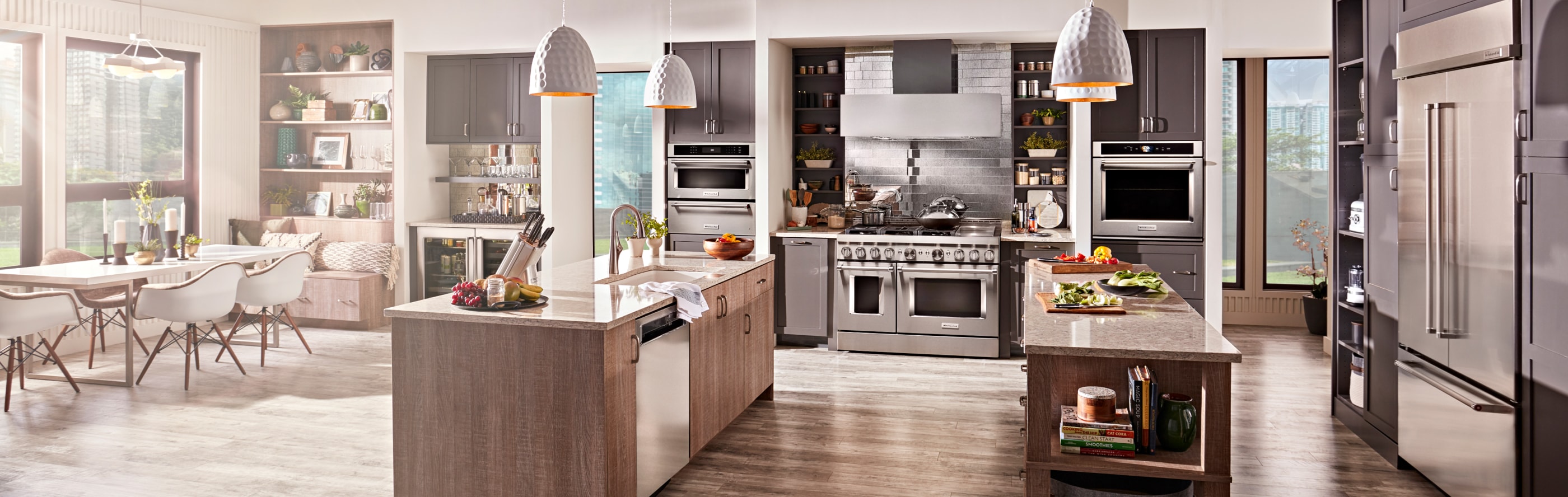 Major appliances with style that matches performance make a huge impact on the look, feel and functionality of your kitchen. Choose from standard or commercial sizes to fit your layout and making needs. Color and style matter too, which is why KitchenAid brand’s major appliances come in various dimensions, designs and colors to add sophistication, convenience and style to your kitchen. When you’re planning a kitchen remodel, start by choosing a refrigerator, dishwasher and cooktop. Keep in mind the layout of your kitchen and the placement of kitchen appliances.