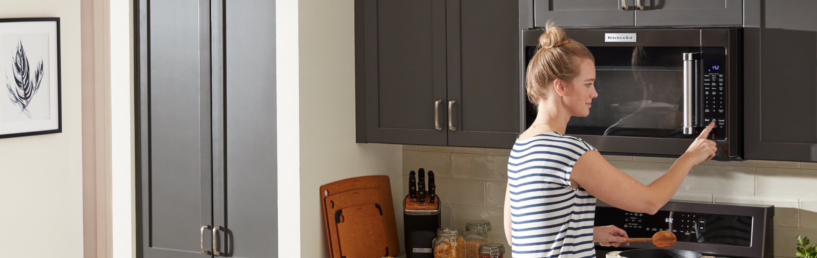 It’s easy to replace the microwave you already have with another model that is the same size and style, as you won't need to do any remodeling to make room. Over-the-range microwaves can often be installed in place of an existing range hood in your kitchen. And, if you already have an over-the-range microwave that is past its prime or simply no longer meets your needs, KitchenAid brand has a range of microwave hood combinations to choose from.