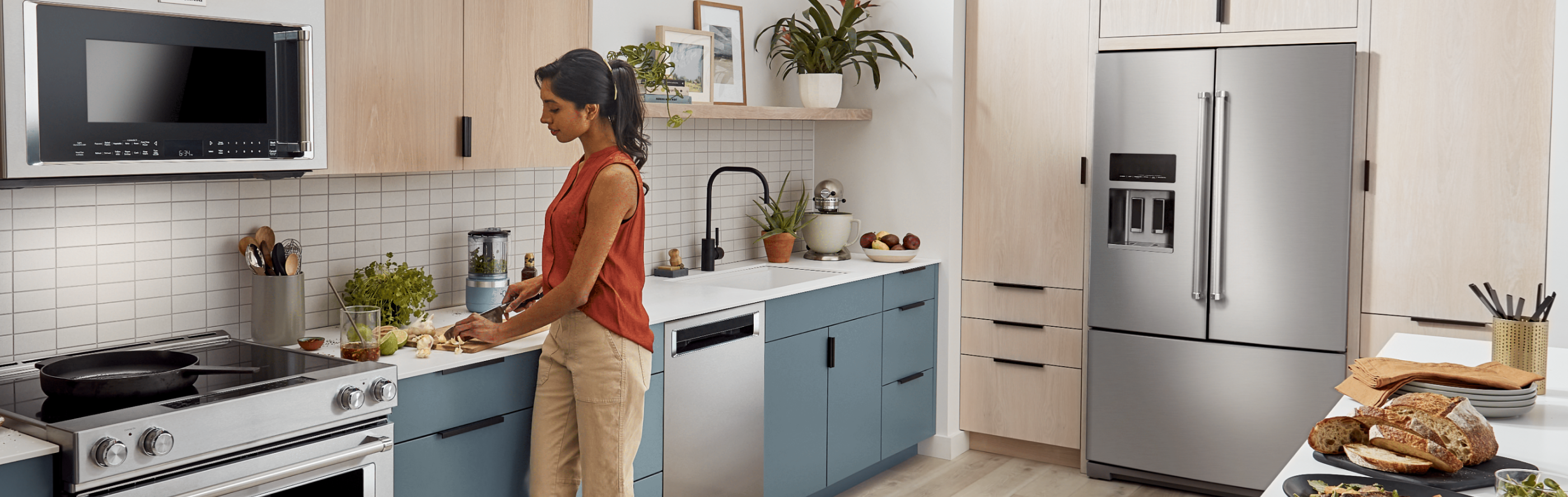 Browse the complete lineup of KitchenAid® refrigerators to keep your ingredients fresh and ready for your next culinary adventure. With refrigerator options from KitchenAid brand made to fit a wide range of kitchen layouts and styles, it’s easy to find a fridge that enables your making.