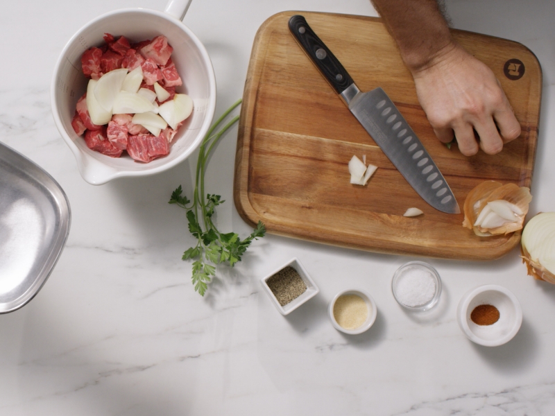 While grinding the meat, you can also grind in ingredients like garlic or chopped onions to incorporate more flavor into the meat itself in addition to any seasonings you choose to include.