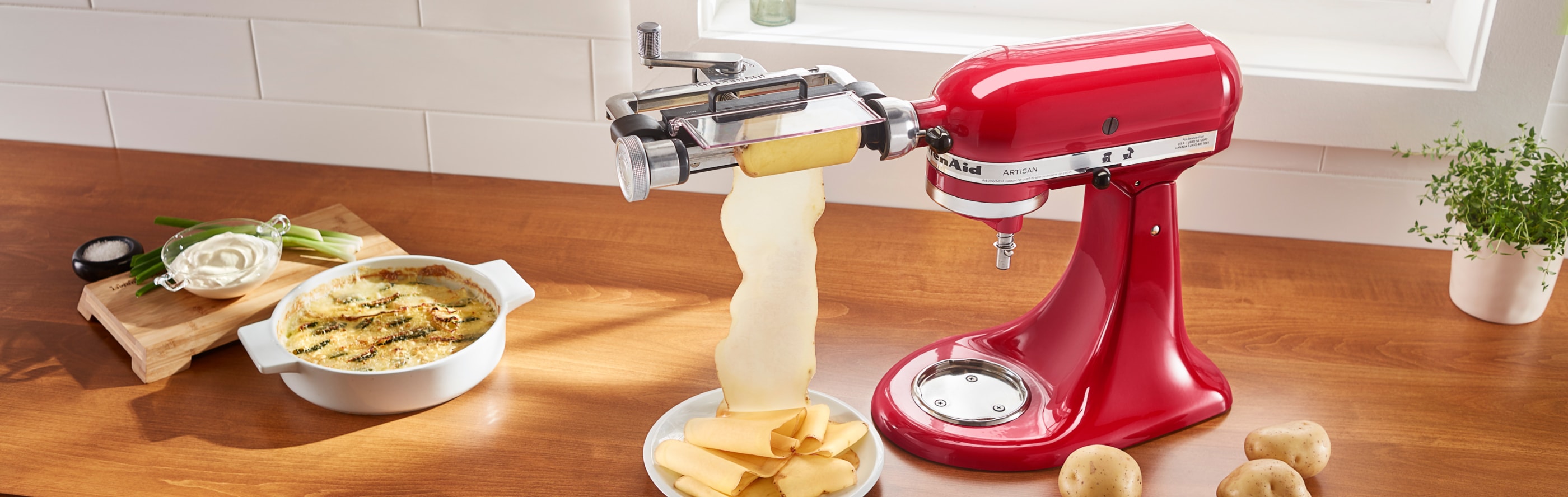 KitchenAid® stand mixers with Vegetable Sheet Cutter, Spiralizer and Slicer/Shredder attachments help you explore new ways to make fresh, nutritious meals and appetizers.